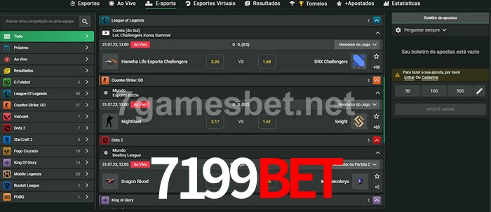 O 7199Bet oferece uma grande seleção de opções de apostas em e-sports com probabilidades competitivas